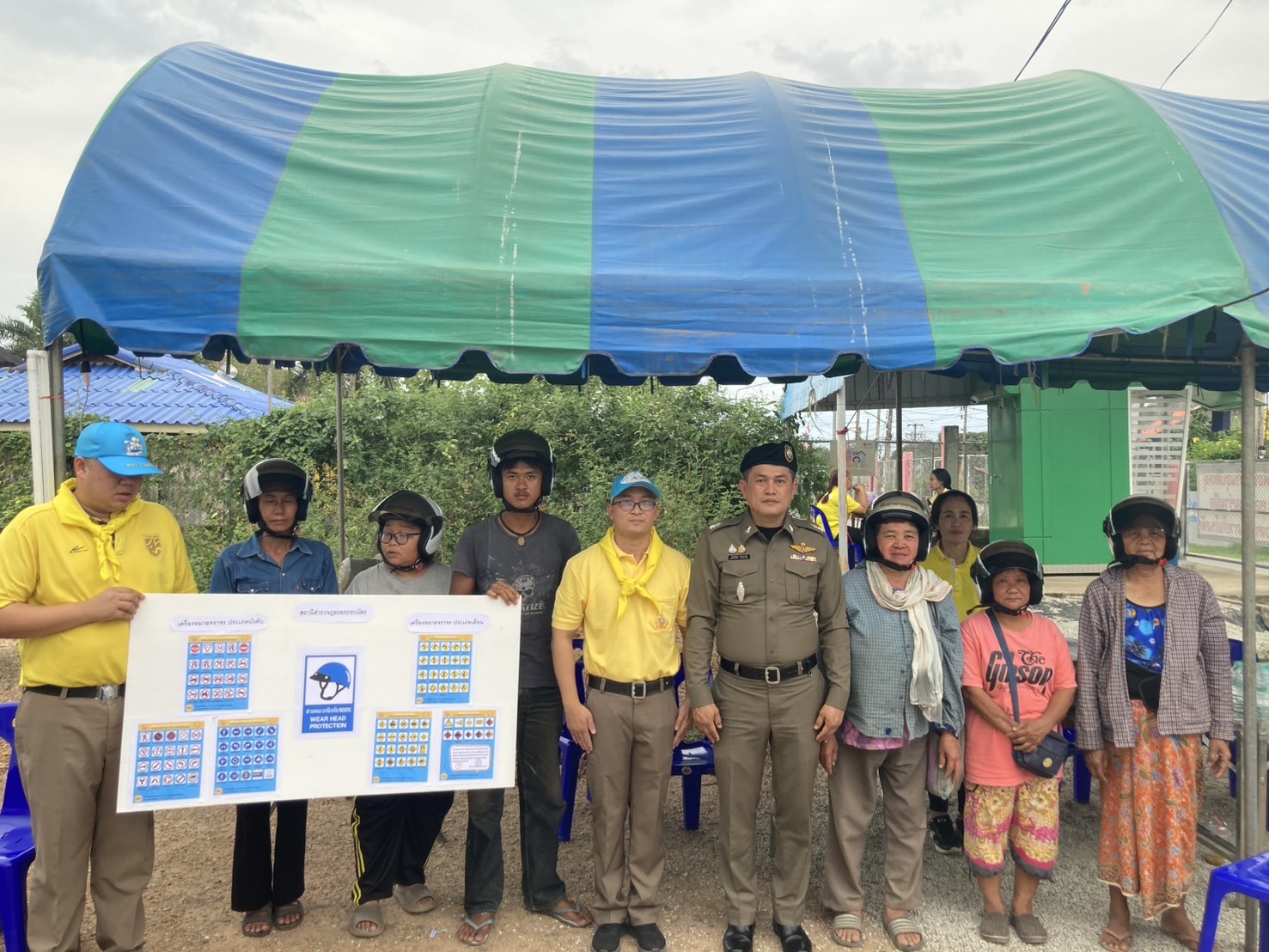 ประชาสัมพันธ์ ให้ความรู้กฎจราจร การสวมใส่หมวกนิรภัยที่ถูกต้อง และเชิญชวนรณรงค์เป็นแบบอย่างในการสวมหมวกนิรภัยขณะขับขี่รถจักรยานยนต์